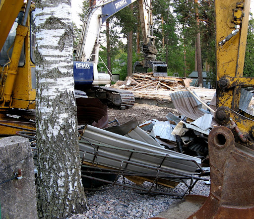 Kävin kävelyllä, vilpoisaa ja naapurin tontilla aamulla oli talo, nyt vain kivijalka ja kellari   [:-(]